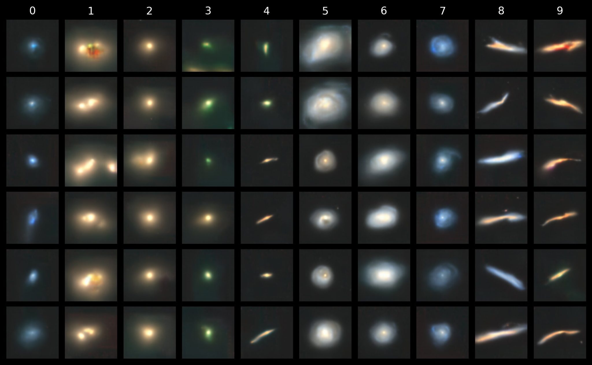 We can clearly see that this better captured the differences between tight and loose spirals and the characteristic shape in the “cigar shaped smooth” class.